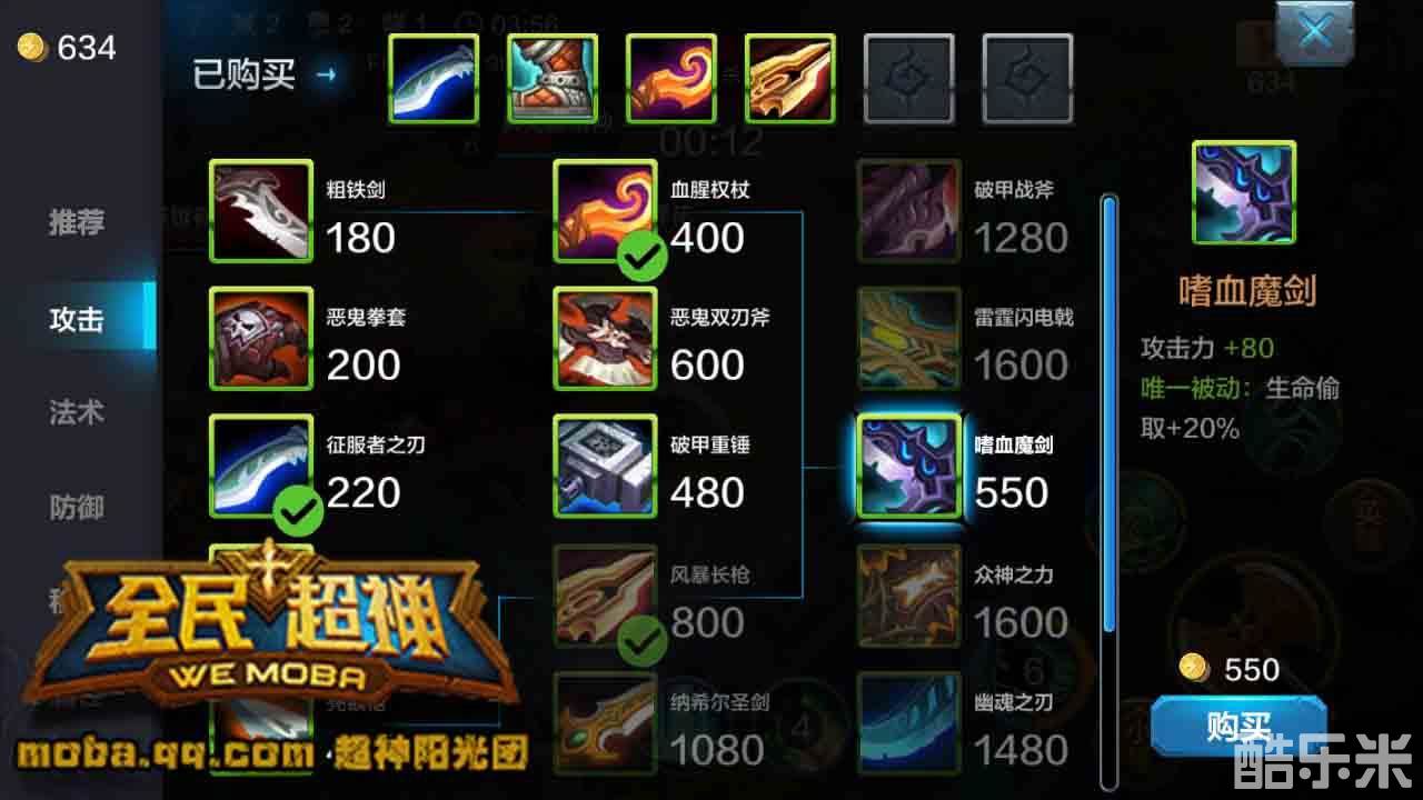 纯暴力ADC出装:攻速鞋+幽魂之刃+嗜血魔剑+众神之力+祝福铠甲