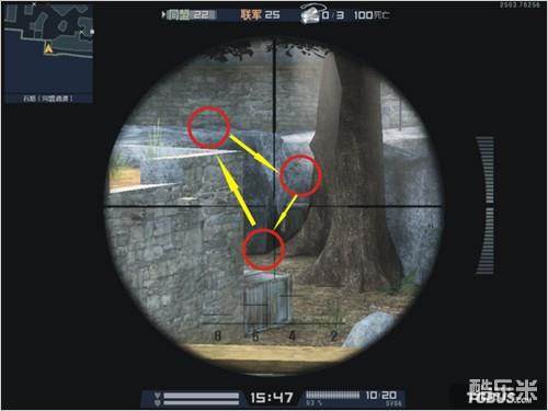 练到最后阶段,镜头可停于三角中心不动,余光锁定目标,在敌人出现的瞬间击毙敌人。