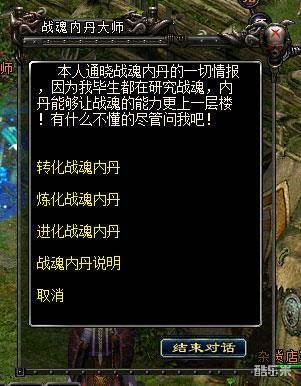 最后编辑于7年前1、在南郡【61,254】找到NPC“战魂内丹大师”,点击“炼化战魂内丹”进行操作;