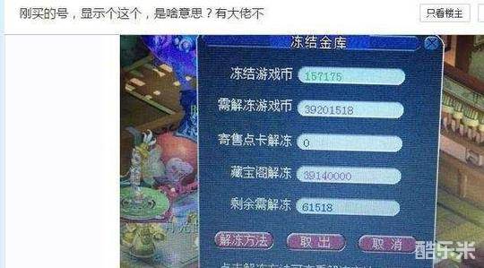 梦幻西游 藏宝阁刚买的号, 上号就需要充4000万梦幻币解冻游戏币