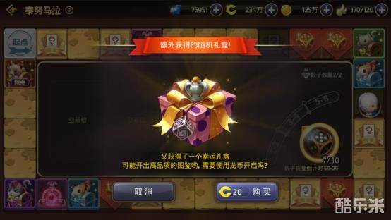 5、普通格(每个大陆探险地图的普通格模块都不一样),一般情况下到这种格子是没有任何事情发生的,运气好的话可以获得一个幸运箱子,开启的话需要20龙币,当然不想开的点取消就行了。