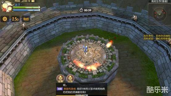 通关介绍:开始后玩家会出现在中间的大圆上面,通过走位来躲避四面八方飞来的火球,用2.5D模式的话可以很好的看到火球的轨迹,前面可以站在一个地方等,火球飞出来后开始移动到另外一边,这样火球都是预判在之前所站的位置,换位就基本上不会被打到了,到后面会出现带减速效果的冰球,这时候宁愿吃一个火球的伤害也千万别中冰球,不然基本上都会失败,减速效果太长了,不让人有活路的感觉,稍微吃下火球也不会死的,毕竟初始的血量还是相当高的。