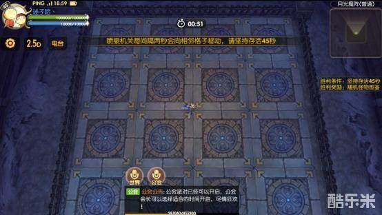 通关技巧:这也是个非常简单的探险,一开始出现的喷泉只有一个,只需要躲的远远就行了,越往后喷泉出现的个数就越多,这时候要摸清楚喷泉的规律,每次出现会在上一次出现地方的周围,那么我们在预判躲避的时候至少要跟上一次喷泉位置隔两个格子,这样就可以保证自己不会被喷泉打到,而有时候运气不太好被逼到角落的话可以选择硬吃一波喷泉,然后冲到另外一头即可,喷泉的位置可以说是毫无规律的,运气不是特别背都不会被频繁的夹击。