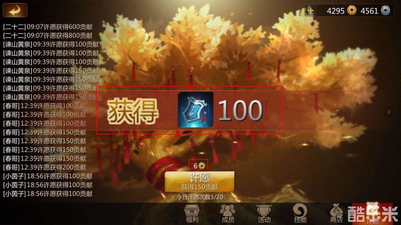 大侠每日可许愿20次,每次许愿将消耗金币,次数越多所需金币越多,同时获得相应的贡献值,次数越多所获得的贡献值越高。