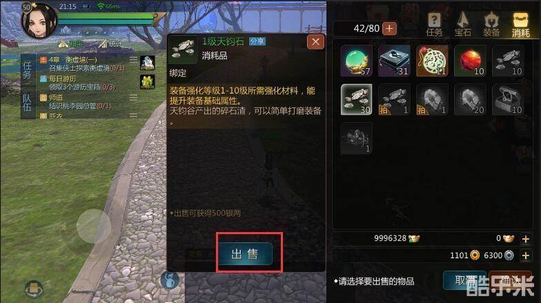 1. 在背包界面,点击“出售”按钮,选择可出售物品, 然后点击“出售”按钮并“确认”,即可出售物品。