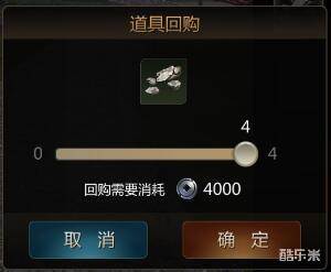 当被回购的物品在所选格子中不只有一个的时候,将进行数量选择后再进行回购。