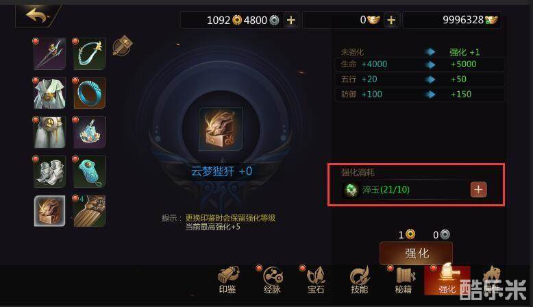 1.装备强化会消耗天钧石,天钧石主要通过参加开启游历宝箱以及参与部分家族活动后的竞拍获取,还可直接快速购买或者在银两商店购买
