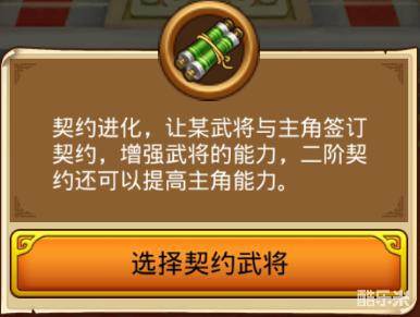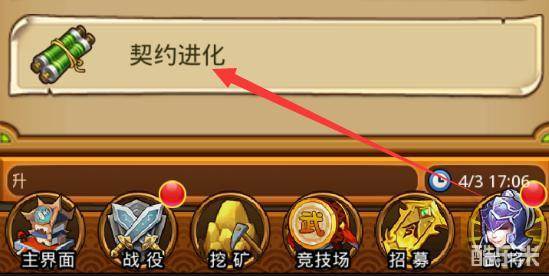首先,我们需要在武将系统中找到“契约进化”的选项(就在武将功能的底下),然后点击进入契约进化系统。