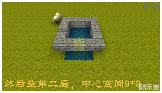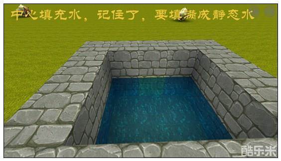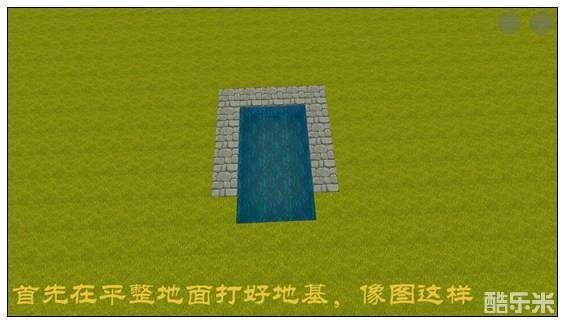 1.首先在凭证地面打好地基,如下图,挖个5*3的坑,里面装满水,边上可以围圈石块;