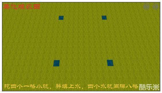 1.首先在平地上挖四个1格小坑,并填上水,四个坑间隔8格;