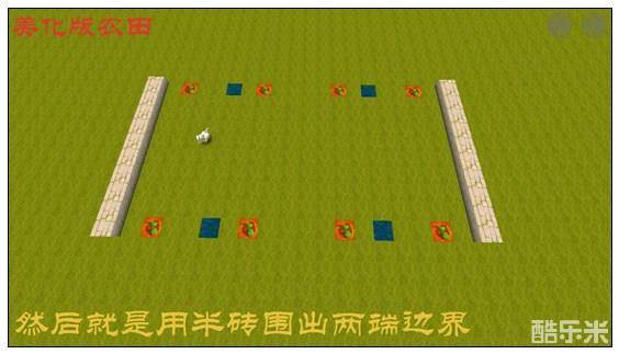 3.接着用半砖围出两端的边界,半砖到水的距离是4格哦;