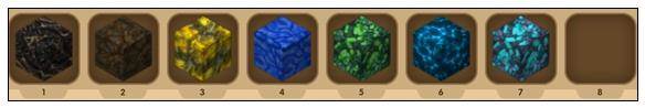迷你世界中的矿物一共有7种分别是:煤矿-精铁矿-闪金矿-蓝晶矿-孔雀石矿-电石矿-蓝钻矿;