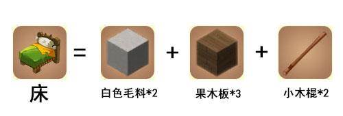 制作床的条件:两个白色毛料、三个果木板、两个小木棍