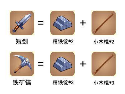 接下来就可以尝试着去挖矿了,挖矿还是需要技巧的,大家也可以去看看一些挖矿的视频,刚开始我们只需要挖精铁矿石,做铁镐和短剑就可以了,然后再慢慢发展去挖钻。好的,那么本期攻略就到这里吧。