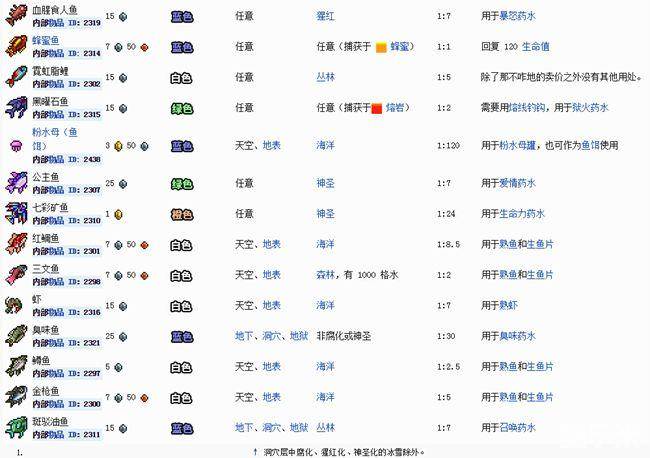 泰拉瑞亚鱼种大全 泰拉瑞亚任务鱼大全;泰拉瑞亚手机版游戏中玩家可以钓鱼来获取鱼类去制作药水或食品,另外钓鱼任务也需要特定的任务鱼,下面小编为大家整理了游戏中的鱼类大全,希望能对玩家们有所帮助。