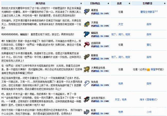 泰拉瑞亚鱼种大全 泰拉瑞亚任务鱼大全