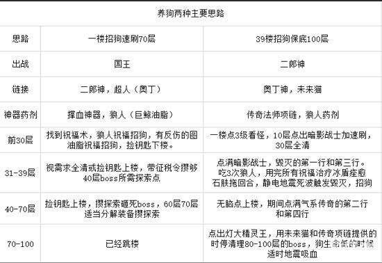 主要提供两种刷图思路——70层速刷和保底100层。
