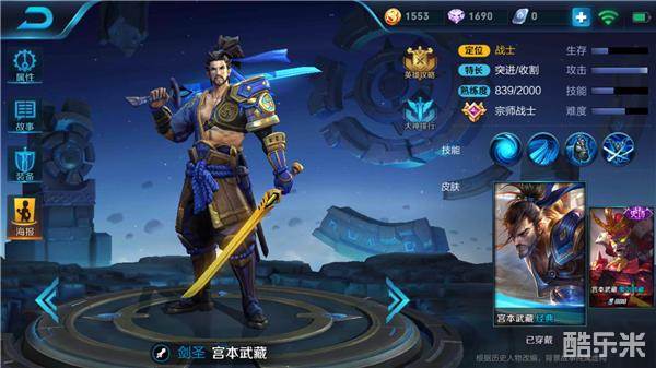宫本武藏是一名完美的上单英雄,他的一技能可以击落敌军的控制技能和远程消耗技能,这让他防守能力极强,在前期可以确保防御塔的绝对安全;同时大招超强的单体控制能力和爆发力让他可以肆无忌惮的单抓留人,虽然大招状态下一技能的击飞效果被取消,但只要你能将技能衔接到位,他依然具备秒杀敌军脆皮英雄的能力。前期宫本武藏侧重于守塔和发育,让自己更加平稳的升到4级;中后期团战时他主要侧重于对敌军脆皮英雄的压制,只要能保证将他们击杀,我军获取团战胜利就会无比轻松了。