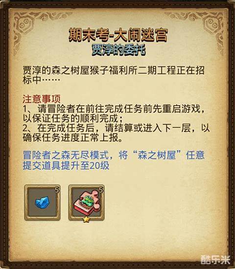 任务要求:冒险者之森无尽模式,将“森之树屋”任意提交道具提升至20级