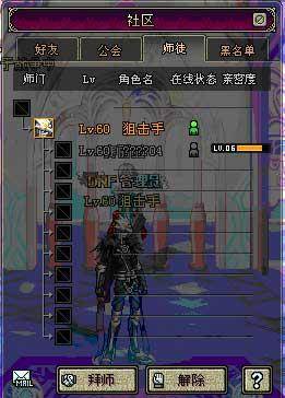 为了加强用户的体验,《DNF》中还具有独特的师徒系统。师徒同时在线的时候会增加双方的亲密度,根据亲密度和徒弟在线人数的不同师傅和徒弟都有不同程度的奖励。