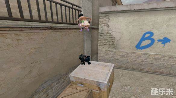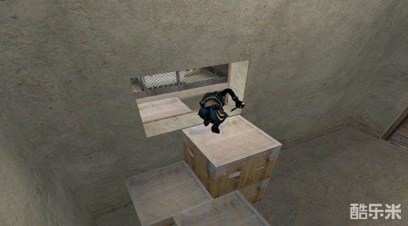 这里相对来说已经足够安全了,如果觉得不够或者有强迫症可以继续向上.还是贴近箱子WS按住闪蹲4次,停1秒左右跳蹲,然后W+跳蹲.