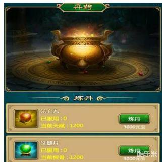 丹药供分为两种:沁心丸和洗髓丹。服用沁心丸可以提升天赋值,天赋值可以显著增加PK时角色的攻击力。服用洗髓丹可以提升根骨,根骨可以显著增加PK时角色的防御力。