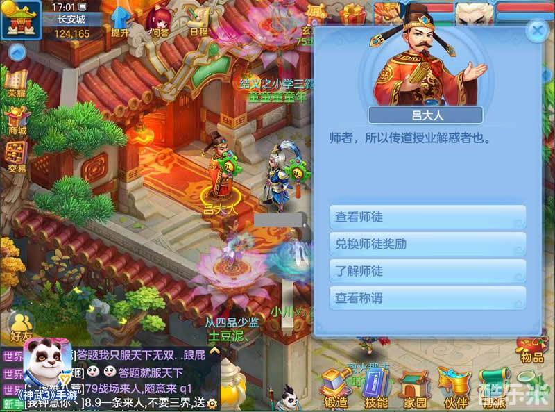 其次,取消徒弟等级达到90级强制自动出师的功能,徒弟90级后无法进行勤修任务、不再获得三界见闻,仍可获得师徒积分。师徒系统优化上线后,吕大人将代替之前帮派里面的师徒指引人成为了新的师徒NPC,少侠们可以在吕大人处领取勤修任务、进行出师等等。
