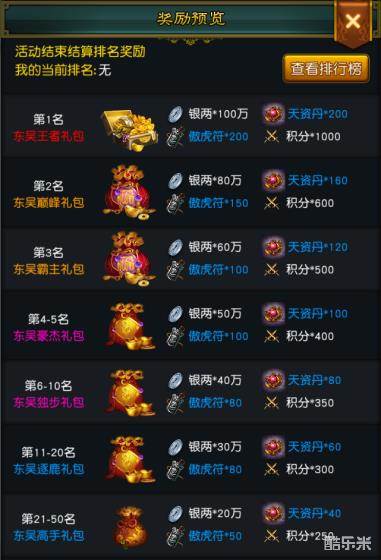 4、在玩法结束后,将会根据排行榜发放丰厚的奖励。