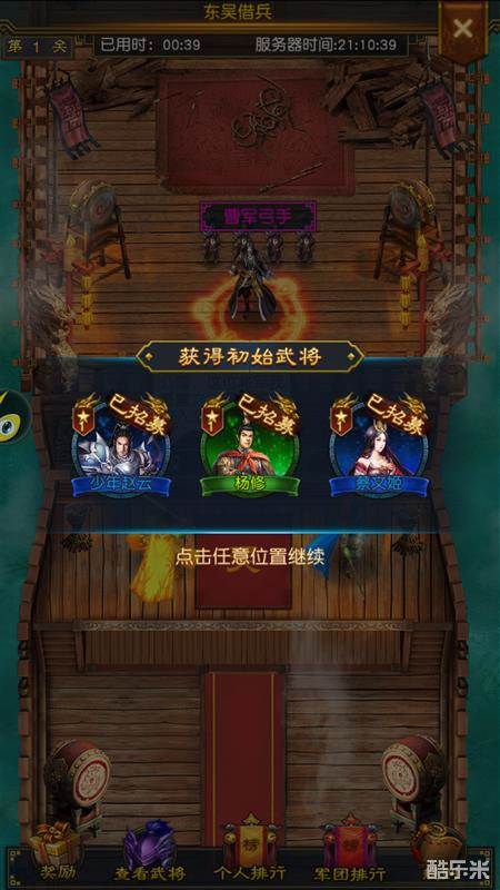 1、东吴借兵总共有30关,每关都会有一个守将,点击守将即可进入备战界面,战胜守军便可获得将领或者神兵,并开启下一个关卡。