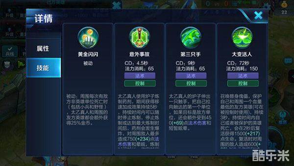 太乙真人的被动技能在每次周围有敌方非英雄死亡时,其中包括小兵和野怪都会让太乙真人和队友获得的金币提升25%,被动技能的存在直接让太乙真人成为一个称职的辅助,只要站在队友周围就可以获得额外的金币加成,大大加快了队伍的发育能力。