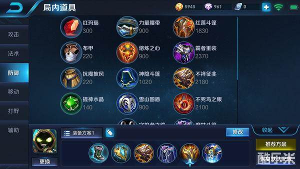 六神装:抵抗之靴、极寒风暴、不祥征兆、魔女斗篷、奔狼纹章、贤者的庇护