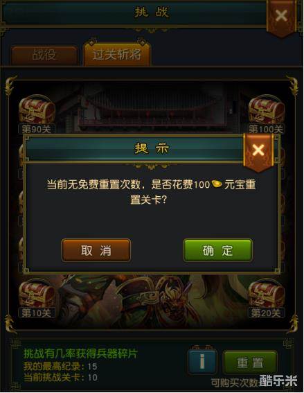 如果玩家觉得当前关卡已无法通过,但是又想继续获得奖励,可以点击“重置”按钮可以重置当前通关进度,从头开始挑战。