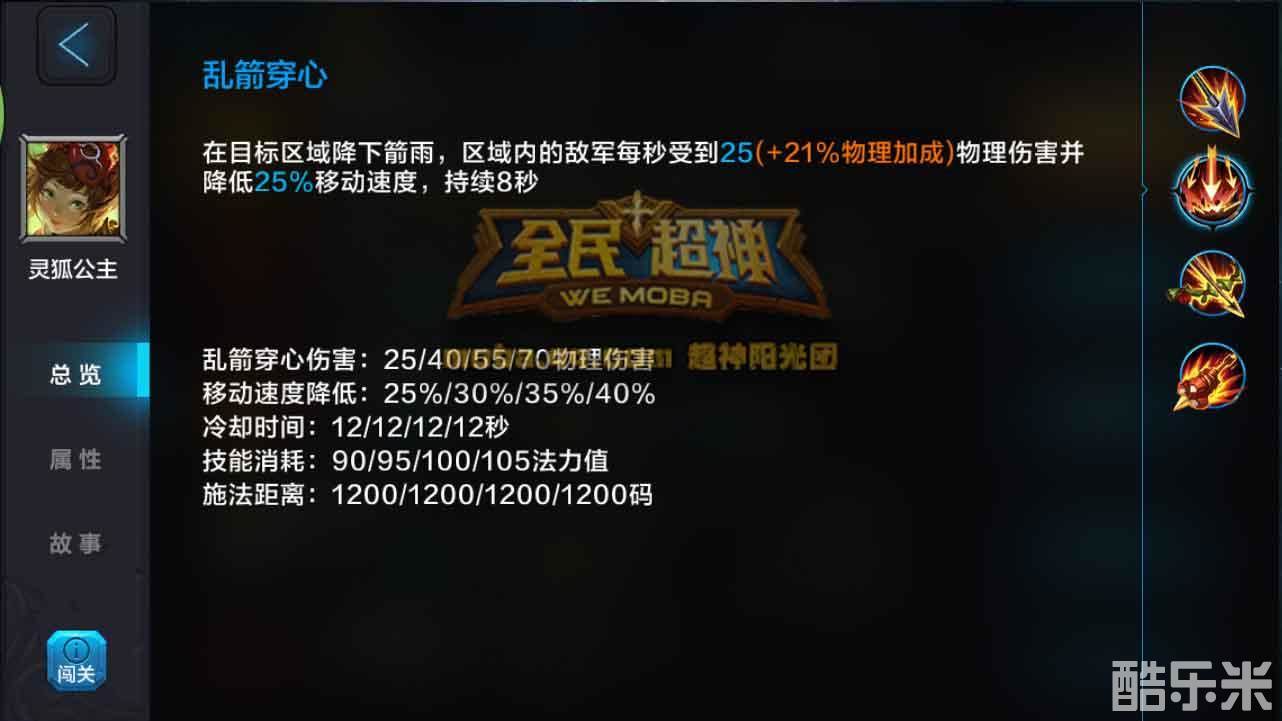 灵狐公主超远距离的射程,让他在对线期拥有超高的安全性,可以远程消耗对方,而对方却无法攻击到自己,遇到敌方英雄gank时,又有乱箭穿心限制对方移动速度,增加自己的逃生几率。