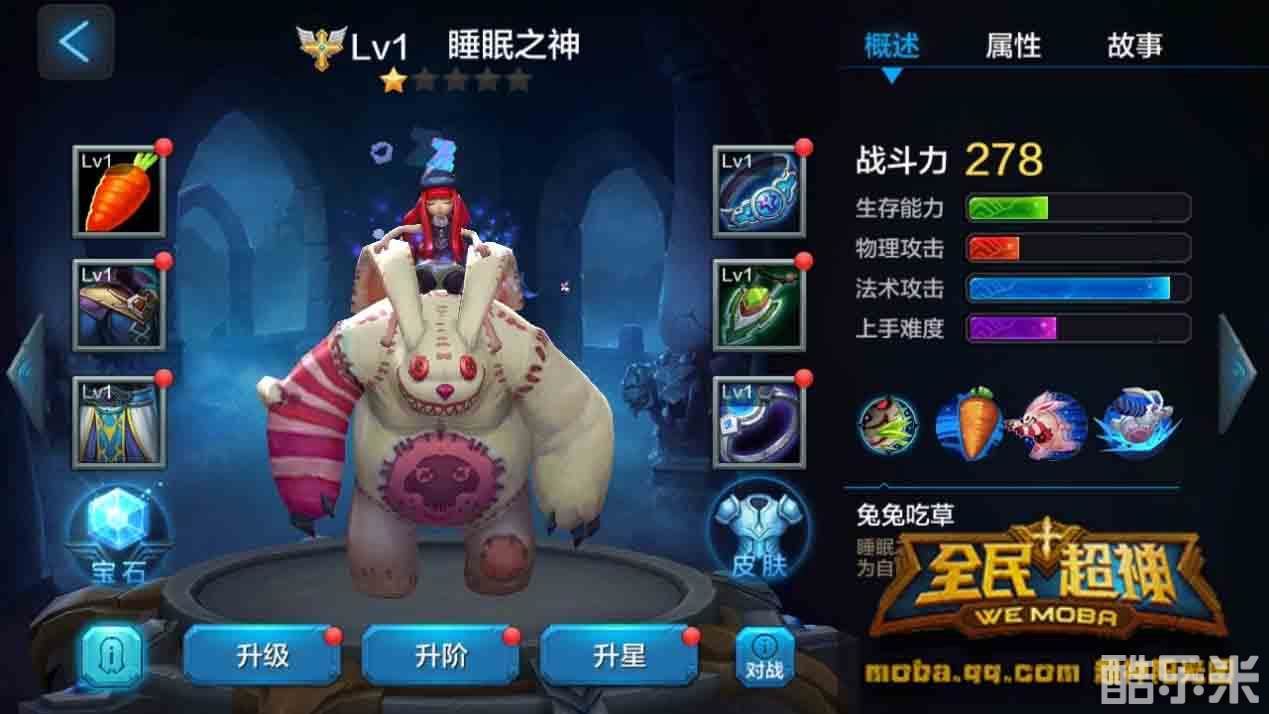 邦尼是一个潜力英雄,他的二技能“狂暴兔兔“根本就是强势存在,只要是放了一个兔子,就可以追你满屏幕跑,哪怕你出六只鞋子,跑的再快,也终究会咬到你,这么安了GPS的功能,你怕不怕,除此之外,邦尼的所有技能都是噩梦存在,很多人会觉得兔子大招会放空,其实不然,本来圣战神就腿短,被咬到后就会减速,一个大招下来,圣战神还不死?
