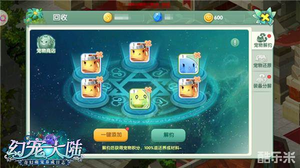 2.宠物商店:可以花费钻石或积分兑换碎片以及养成道具,每日可免费刷新商店。刷新次数每两小时回复一次。兑换所需的宠物积分主要通过召唤、回收和宠物副本获得。大家在探险中契约的多余宠物“回收”解约,就能获得积分兑换自己想要的宠物碎片啦!