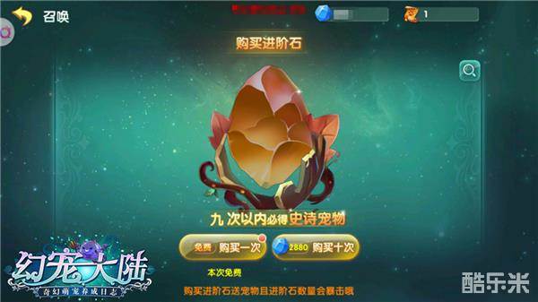 召唤池购买进阶石随机送宠了解一下,当然此途径适合氪金大佬以及欧皇们。脸白点的小伙伴免费一发可以收获一只传说宠物,实在脸黑也没事,毕竟召唤十次必得史诗宠物,一点不慌~