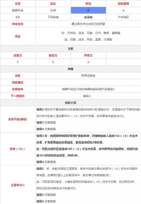 永远的7日之都镜音铃连技能属性详解