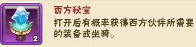 简介:打开后有概率获得西方伙伴所需要的装备或者坐骑