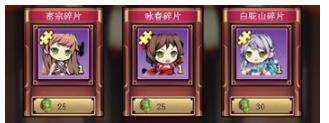功勋商店,玩家在对战中获得的功勋值,可以在这里购买众多的武娘碎片,80个碎片就可以直接招募出完整的武娘了,多余的碎片还可以用于武娘的进化哦。