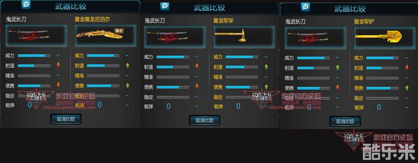 首先我们来看威力方面,与这些黄金类的近身武器相比,威力方面是持平的,在出刀速度方面相比,速度慢于尼泊尔,慢于黄金军斧,但是要比黄金铲铲快一些,不过在便携程度上与这三者相比,都要落后一些,不利于快速移动。