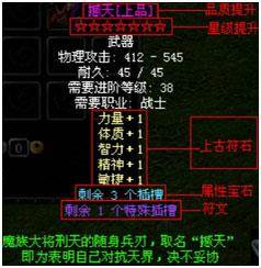 可镶嵌于进阶后装备,镶嵌后大幅度提升装备属性,为不可多得的上层宝石。