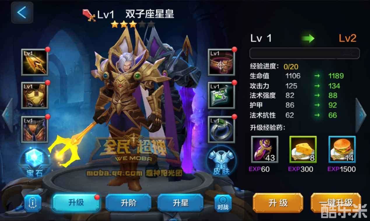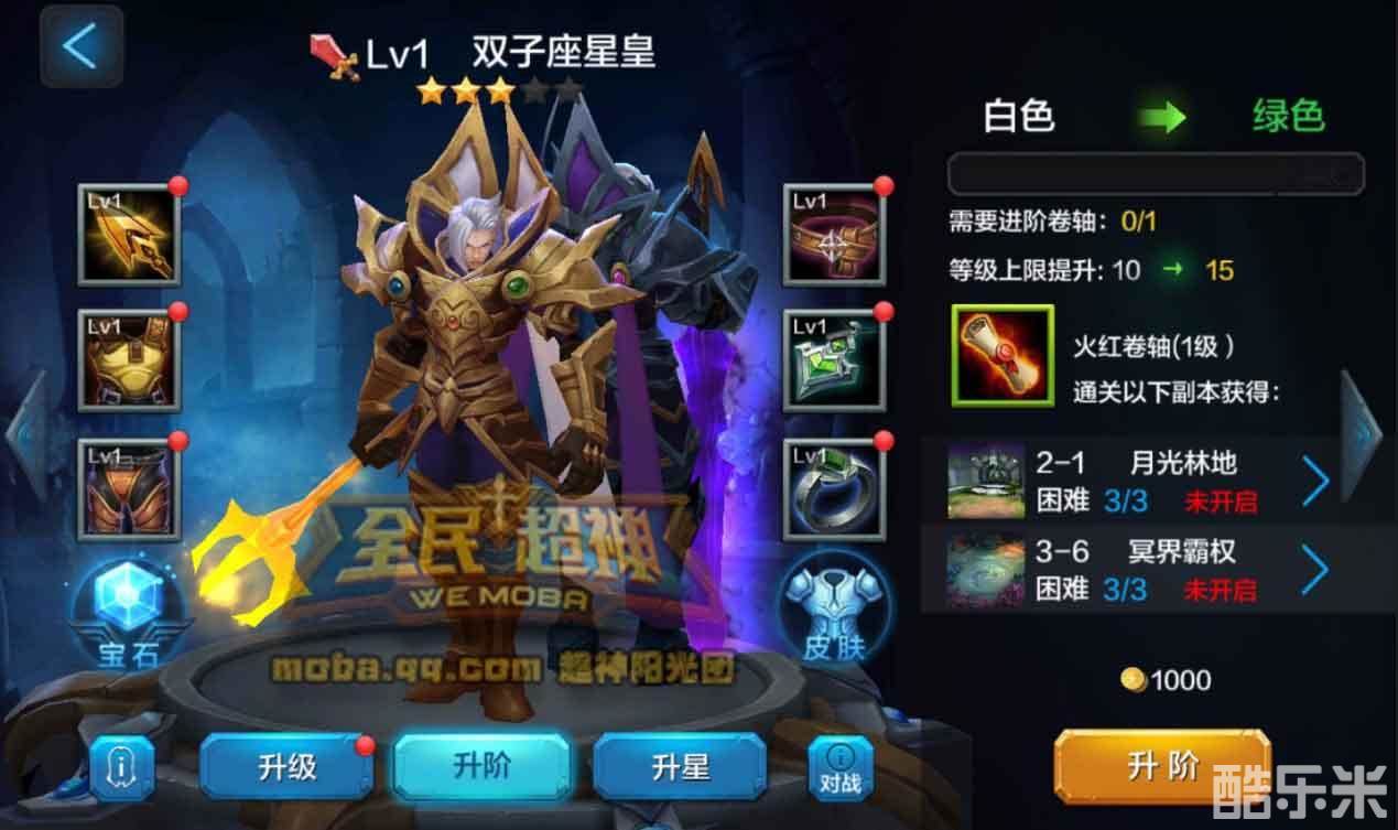 阶级方面,英雄进阶需要卷轴,双子座属于战士英雄,需要不同等级的火红卷轴。升阶卷轴可以通过刷困难闯关关卡随机获得,只要小伙伴们自己努力,升阶到紫1不是梦。