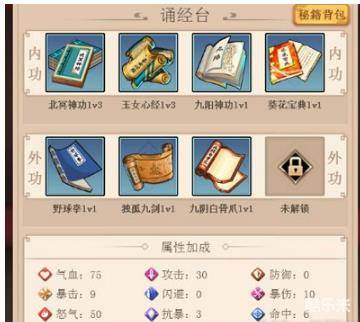 在诵经台,我们可以放置自己获得的秘籍,增强自身的属性值,这个强化效果对于所有的上阵武娘都是有效的,不过大家需要留意的是,相同类型的秘籍只可以放置一本哦。