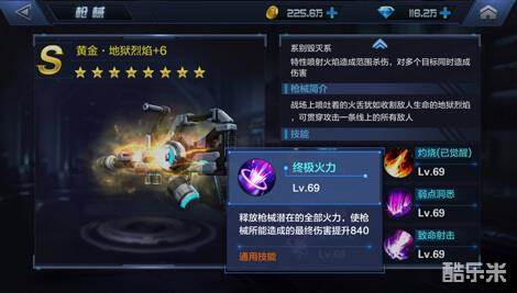 终极火力释放枪械潜在的全部火力,使枪械所能造成的最终伤害大幅度提升。1级终极火力能够提升最终伤害500,69级时提升最终伤害840。这个技能虽然不能直接提升枪械的攻击力,但是却能够将打出的伤害提高,达到最终实际造成的伤害比没升级这个技能之前高不少。