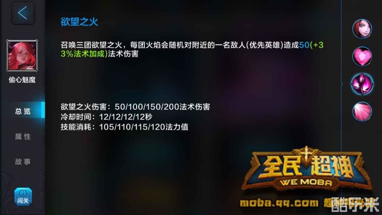 欲望之火:放出三团欲火,火焰会锁定附近的三名敌人(英雄优先)进行攻击,每团火焰都会对敌人造成法术伤害。
