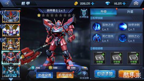 铁甲勇士能够为玩家增加攻击力、防御力和血量,帮助玩家在接下来的战斗中取胜。作为自由联邦开发的第一代战斗机甲,它拥有良好的装备防护能力和出色的机动性。