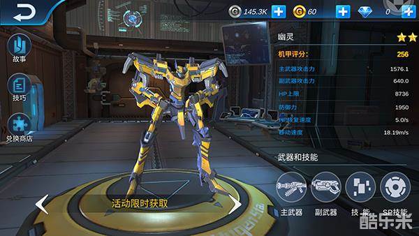 打开机库,点击选择近距离型-幽灵,可查看该机甲的详细信息。