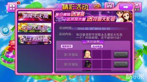 活动:精彩活动天天有,登陆游戏一定不要忘记点开哦,免费礼品送不停哦。