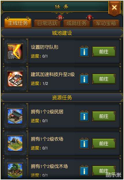 主线任务是整个任务系统中最基础的类型,从初始创号就开始伴随着玩家一起成长。主线任务为玩家指明当前所需要做的最基础的操作,跟随主线,玩家可以将自己的城池不断的发展壮大,慢慢提升自身的实力。