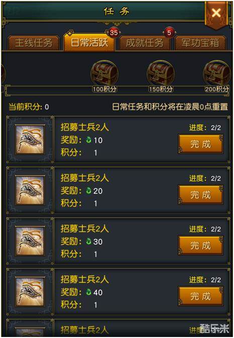 日常活跃会列出玩家每日要做的事情,让玩家更清楚的知道自己每天的目标,而不会盲目进行一些操作。完成活跃任务,可以获得声望,这为玩家的升官之路提供了强有力的助理。而活跃积分达到系统要求,还会得到额外的收益。